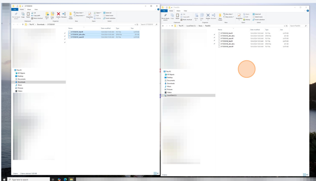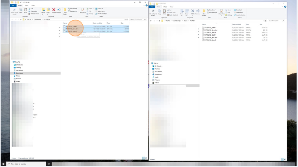 Select all three of your NEW calibration files in your left side folder, by clicking the top file, holding the shift key and clicking the third file and they will be all selected.