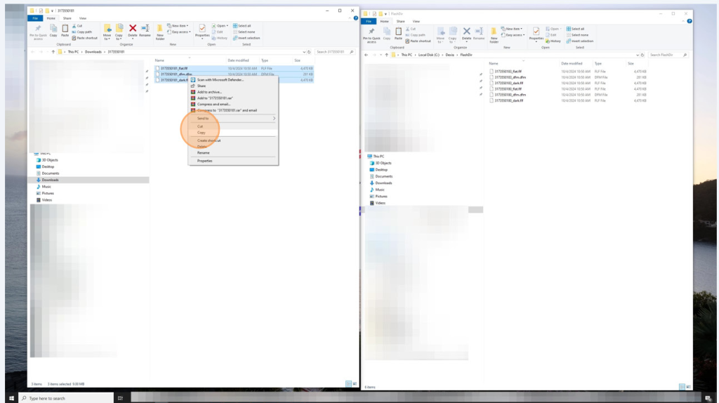 Click Paste to copy your new calibration files to the folder that should have all your calibration files. This is all you need to do, repeat this on each computer you want to use the new sensor on.