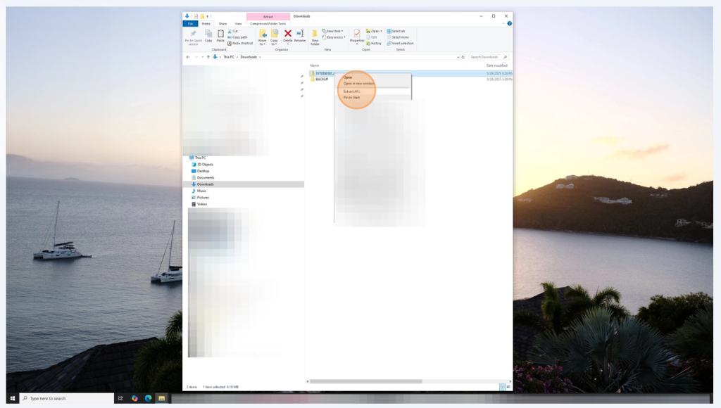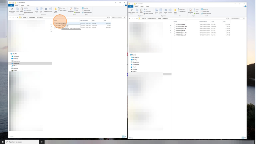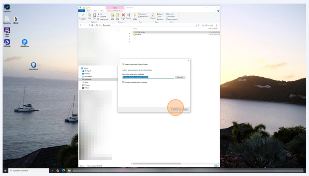 The folder with the newly extracted files in it should open automatically, move the folder to half of your screen on the left