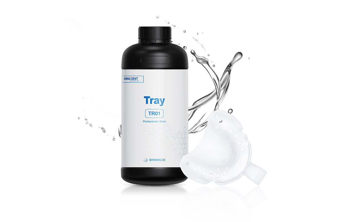 Tray TR01 is a biocompatible material with a high elastic modulus making it an outstanding choice for printing custom trays. The high elastic modulus allows the printed tray to resist flexion under high pressure leading to more accurate impressions. Its biocompatibility makes it safe for short term use in the mouth.