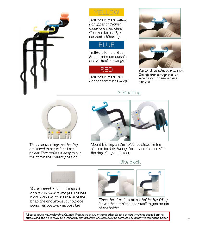 It is a one-piece holder, it´s up to you if you want to use an aiming ring or not. The bite block, on the other hand, is absolutely essential when you take anterior PA´s. Without it, you are restricted to place the sensor where you can, not where you need.