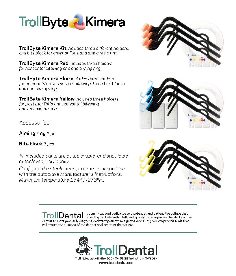 | KitType | Kimera Kit Aurora Size 1, Kimera Kit Aurora Size 2, Kimera Kit Dexis Platinum, Kimera Kit Dexis Titanium, Kimera Kit Gendex Size 2, Kimera Kit Gendex Size 1, Kimera Kit Dexis Platinum BIO Endo, Kimera Kit Schick 33 Size 2, Kimera Kit Schick 33 Size 1, Kimera Kit Quickray Size 2, Kimera Kit Quickray Size 1, Kimera Kit XDR Size 2, Kimera Kit XDR Size 1, Kimera Kit Clio Size 2, Kimera Kit Clio Size 1 |