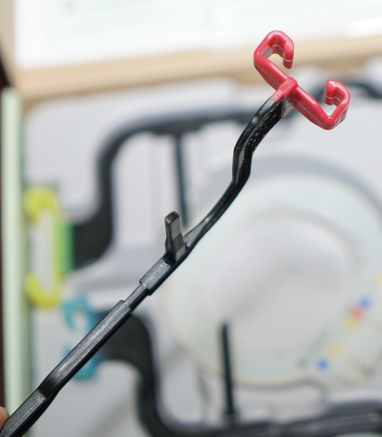The result is a one-piece holder with a stiff arm and a softer, adjustable claw. The stiff arm ensures accuracy of sensor placement in the patient’s mouth. The softer claw allows you to finely adjust the tension to reduce the risk of tearing the sensor cover.